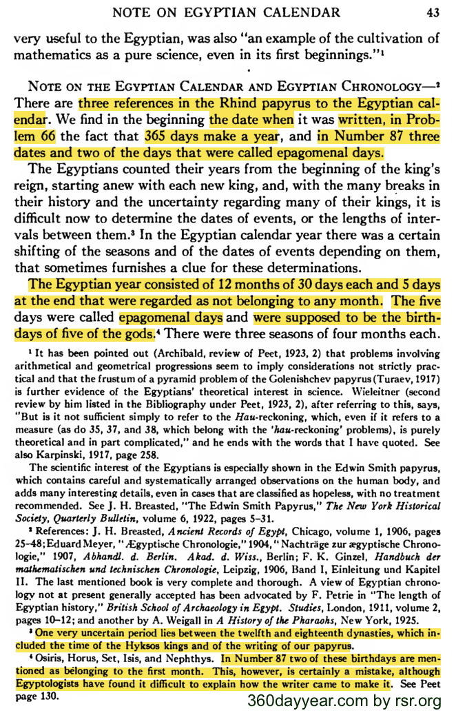 Thus, like so many other cultures, though the Egyptian astronomers of course knew that there were more days in a year, they disrespected the remainder and showed a deep loyalty to the history of the 360-day calendar.